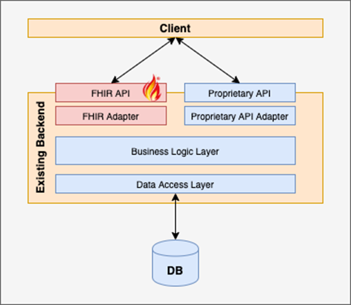 图10.1.2-1 在现有后端基础上的混合FHIR/专有API模式